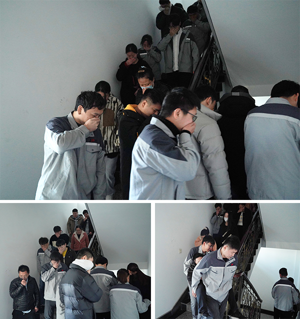隨著消防警報(bào)的響起,全體員工按照應(yīng)急預(yù)案,沿指定樓梯通道迅速撤離到一樓安全地帶。整個(gè)過程井然有序,撤離時(shí)間僅用了短短幾分鐘,真正做到了安全、快速、有序。